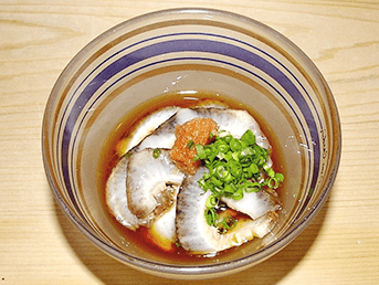 能登や佐渡の赤なまこを自家製のポン酢でどうぞ。磯の香りと歯ごたえが◎11月~3月頃限定